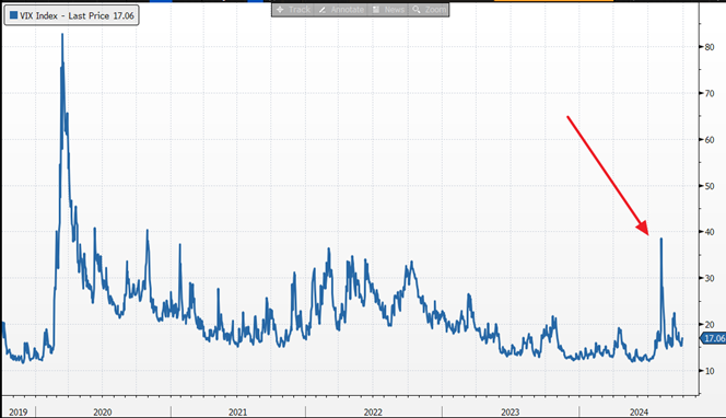 Looking closer, it appears that the volatility spike (illustrated in the table below) was driven by fears of slowing economic growth, concerns over central bank monetary policies, and geopolitical tensions. Early in the quarter, the U.S. Federal Reserve’s perceived delay in cutting interest rates exacerbated market uncertainty. Although inflation continued to moderate, investors worried about the potential for a recession induced by tight monetary policy, which triggered significant fluctuations across asset classes.