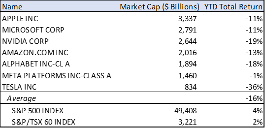 Of note, the entirety of the S&P 500’s year-to-date decline can be attributed to the underperformance of its largest constituents: the so-called “Magnificent Seven.” In 2024, these seven stocks accounted for over half of the S&P 500’s 25% total return. In the first quarter of 2025, they collectively accounted for over 100% of the YTD decline. In other words, the broader index would have been slightly positive were it not for the sharp pullback in these mega-cap names. This reversal highlights the extent to which market performance has become concentrated at the top and how vulnerable the S&P 500 Index can be when these names falter.
